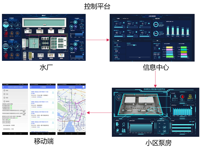 可監測水壓、流量、水質(zhì)、水位等供水信息,以及電壓、電流、頻率、泵組狀態(tài)等設備參數,通過(guò)一整套完整的平臺體系實(shí)現相關(guān)信息的觀(guān)察及聯(lián)動(dòng),完成遠程監控可視化信息管理。